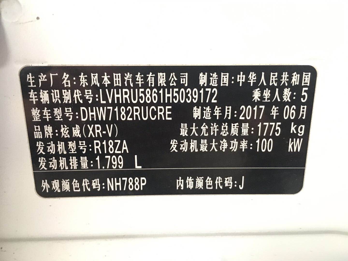 品牌型号:本田XRV