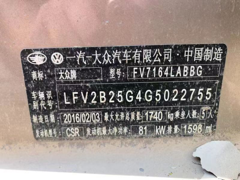 品牌型号:大众