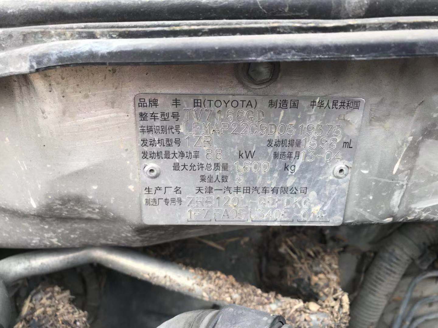 品牌型号:丰田卡罗拉