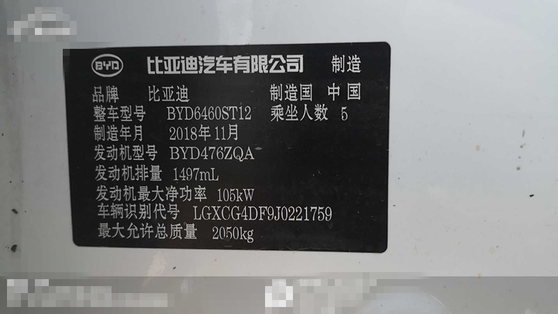品牌型号:比亚迪