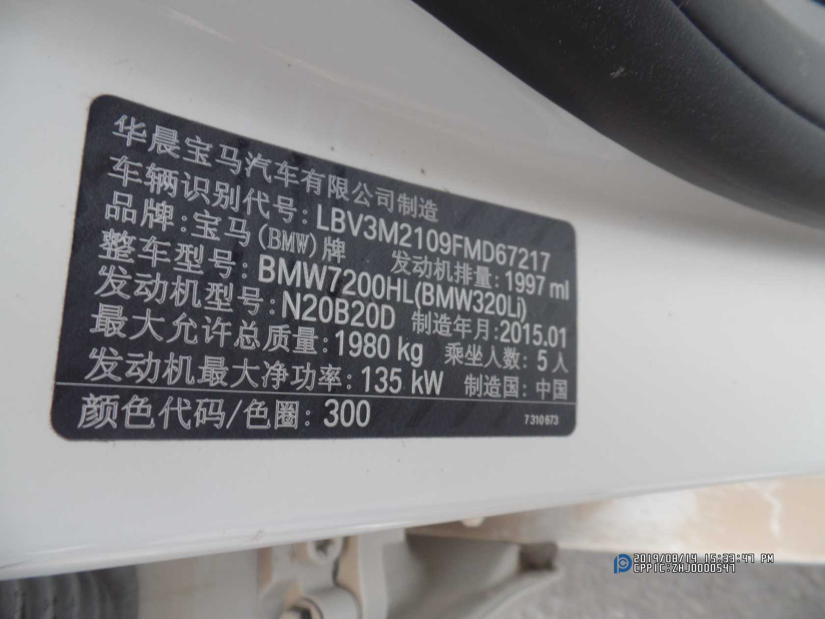 品牌型号:宝马BMW7200HL(BMW320Li)轿车