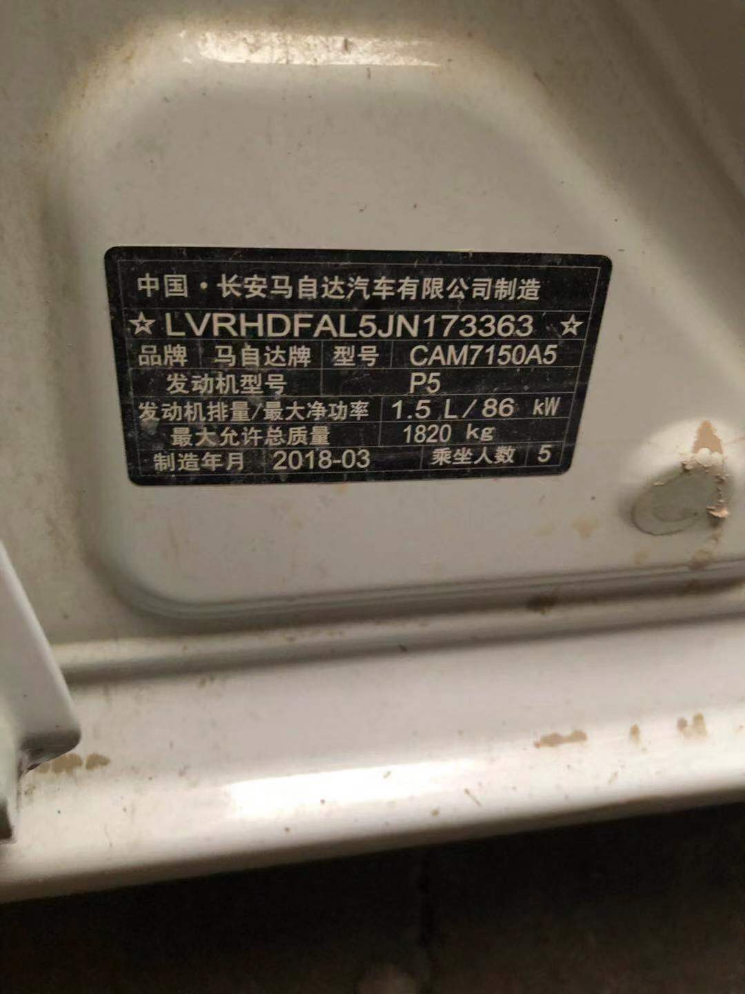 品牌型号:马自达CAM7150A5轿车