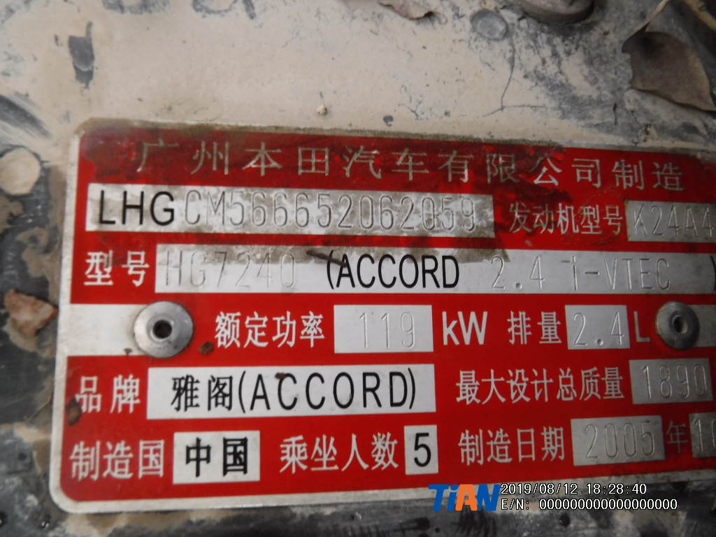 品牌型号:雅阁