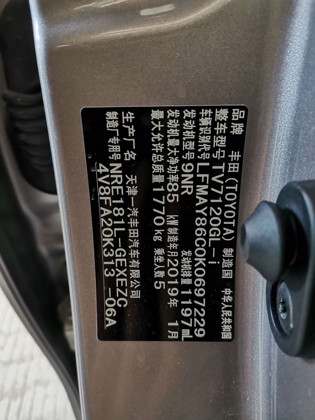 品牌型号:丰田拉罗拉