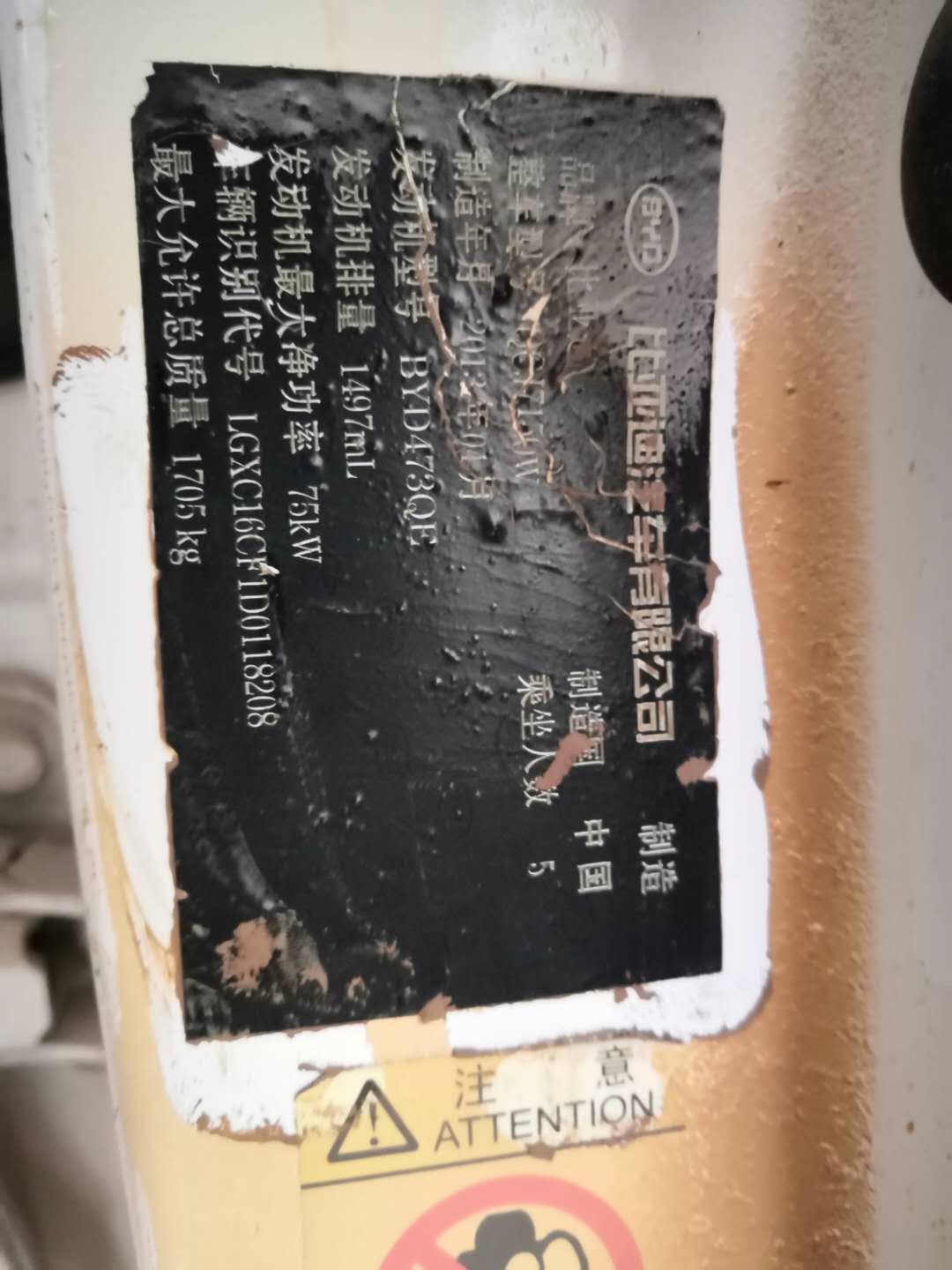 品牌型号:比亚迪