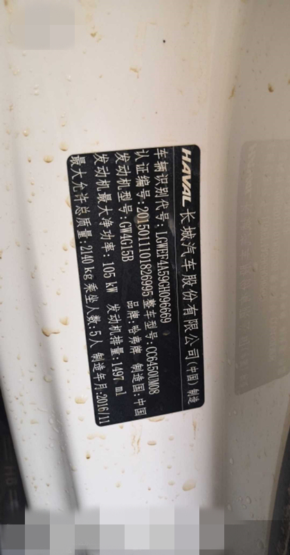 品牌型号:哈弗CC6450UM08多用途乘用车
