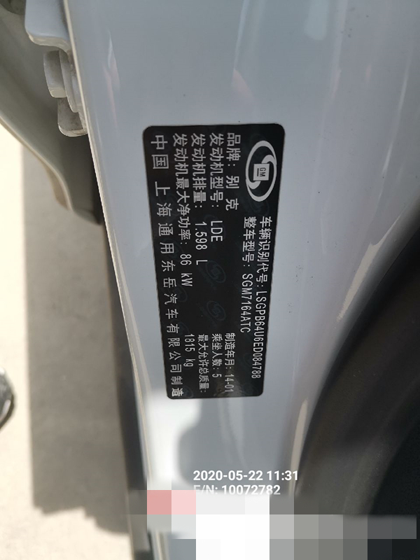 品牌型号:别克