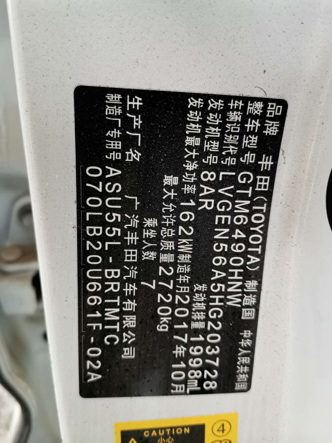 品牌型号:丰田GTM6490HNW多用途乘用车