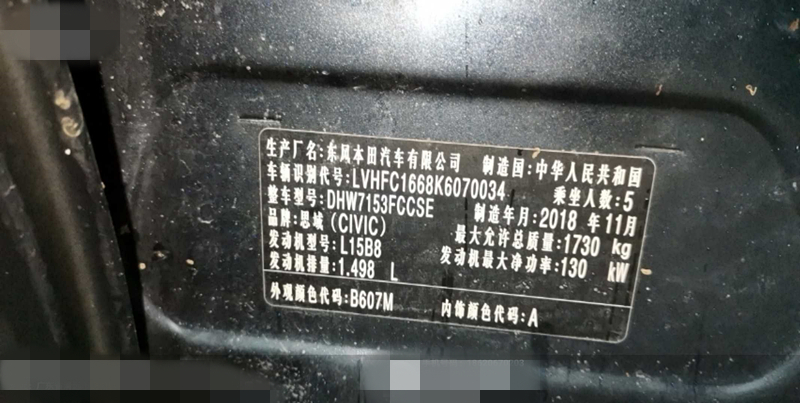 品牌型号:本田思域