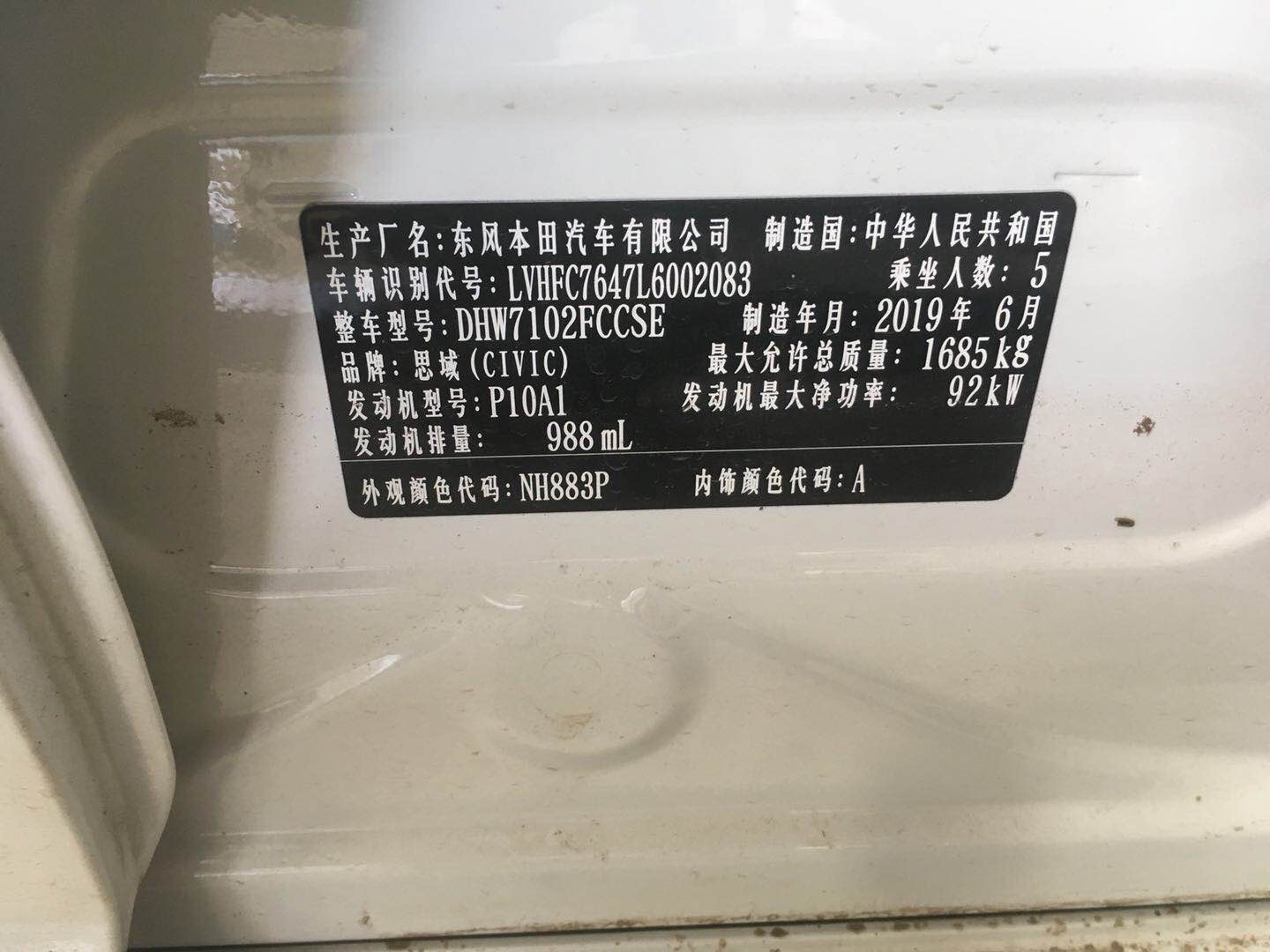 LVHFC7647L6******