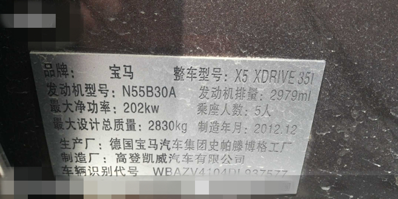 品牌型号:宝马X5