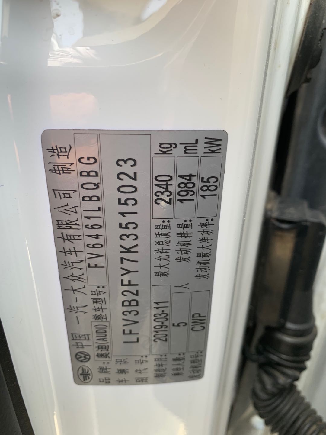 品牌型号:奥迪