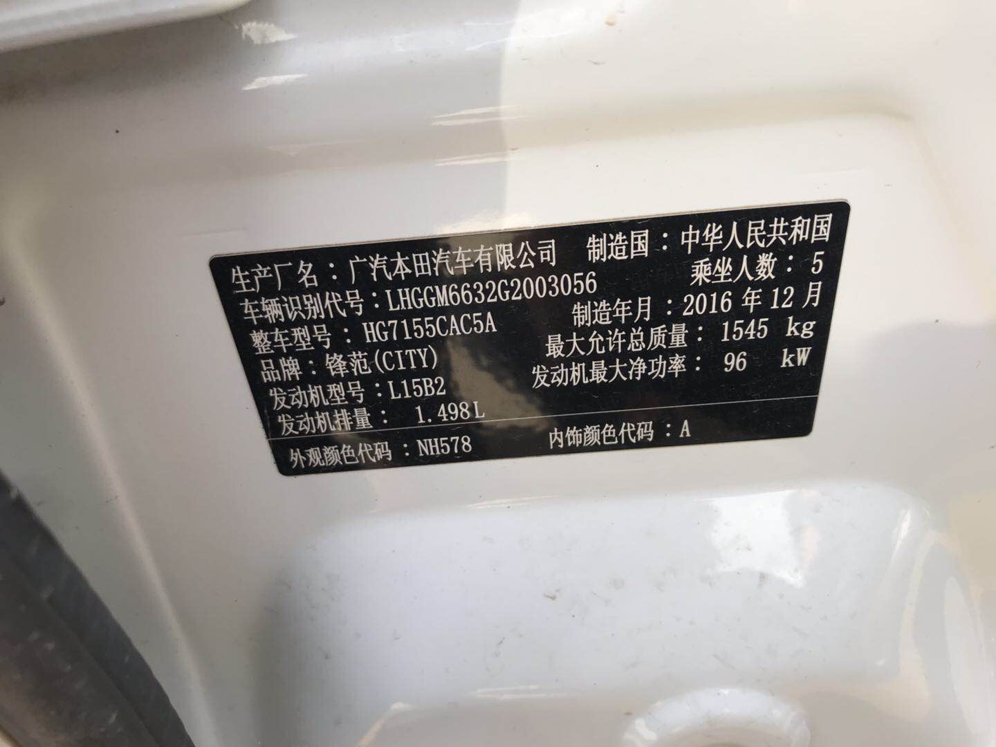 LHGGM6632G2******