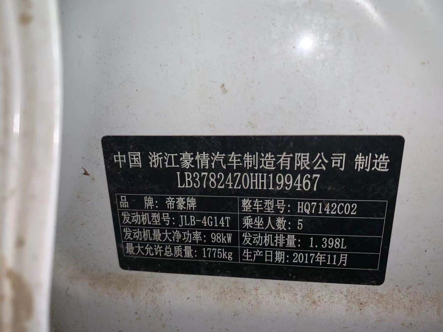 品牌型号:吉利帝豪