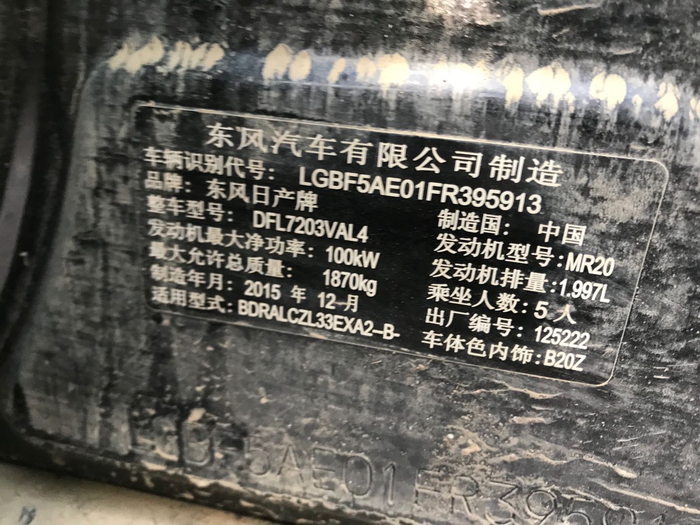 品牌型号:东风日产